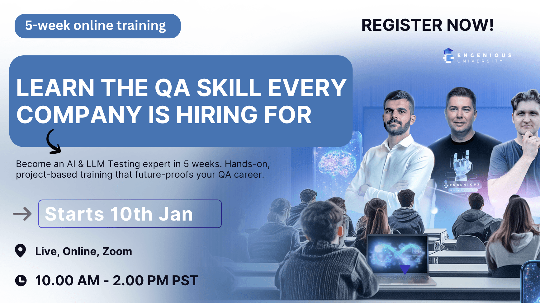 Secure Your Career. Only hands-on, project-based training in the world. Go from manual QA to next-gen AI QA Leader!