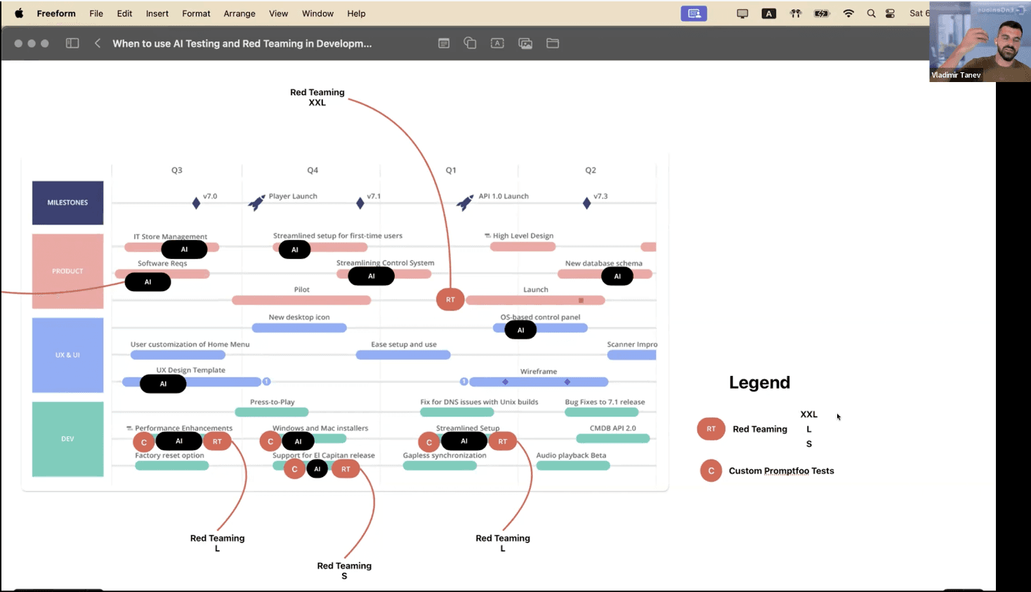 Application Setup: Finalizing the Red Teaming configuration by inputting a comprehensive application context (main purpose, features, system rules) into PromptFoo. Group Triage: Teams exchange reported bugs and attempt to reproduce and validate issues found by classmates. Advanced Testing: Hands-on session applying PromptFoo for complex scenarios, including multi-turn conversation testing using JSON objects for regression. Tool Exposure: Alternative testing tool.